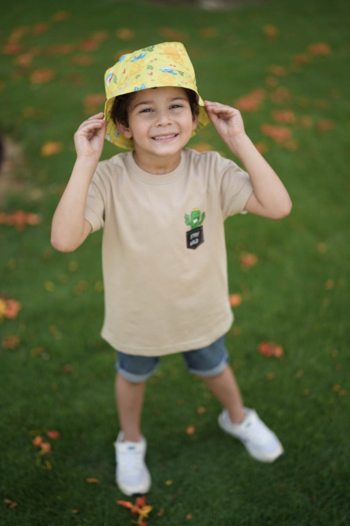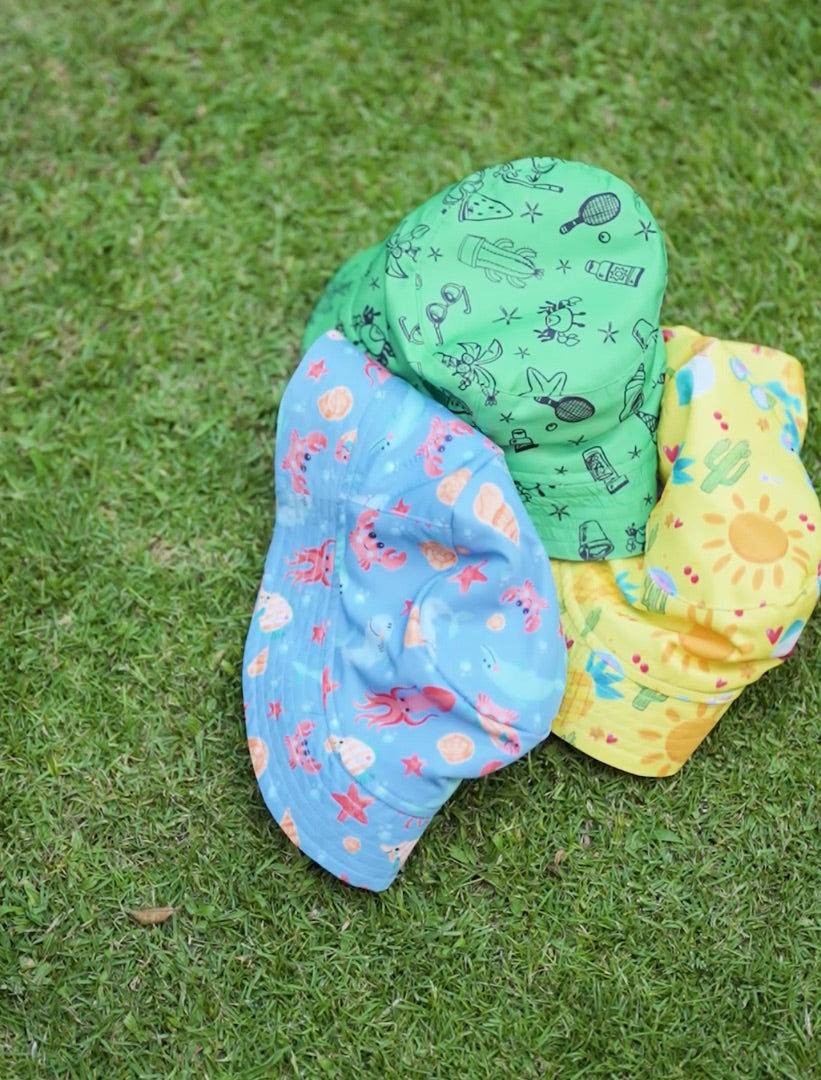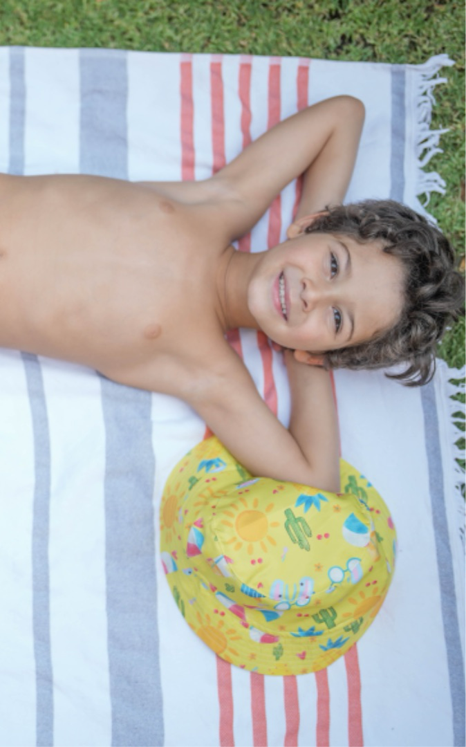 Match your Hat with its swimwear. Our unique Bucket Hat is from a fine heavy cotton for perfect sun protection. It’s a lightweight hat on our kids for a cozy wear with an easy dry after our kids water splash play time. One fit size for all our ages range.